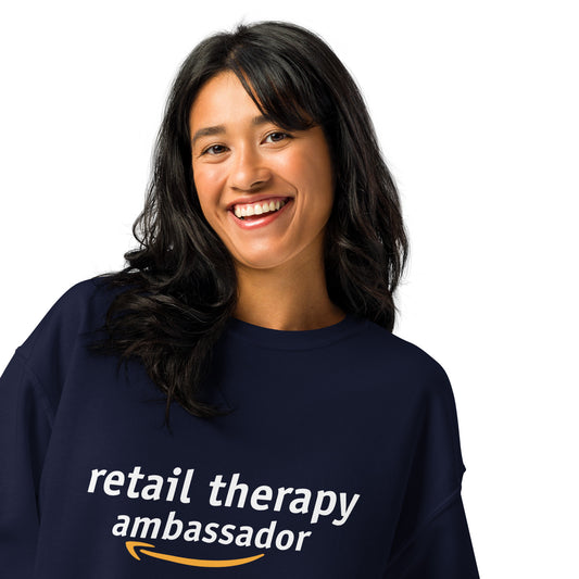 Retail Therapy Ambassador | Funny, Trendy, Casual, and Cute Navy-Colored Unisex Crew Neck Sweatshirt