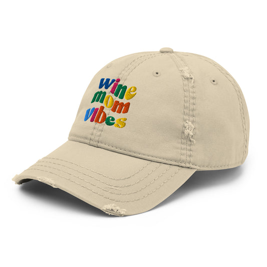 Wine Mom Vibes | Distressed Embroidered Cap for Gifts for Moms, Birthday Gift for Mom, Adjustable Baseball Hat