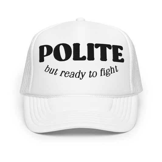 Polite But Ready To Fight | Funny and Punny Adjustable Foam Trucker Hat with Snapback