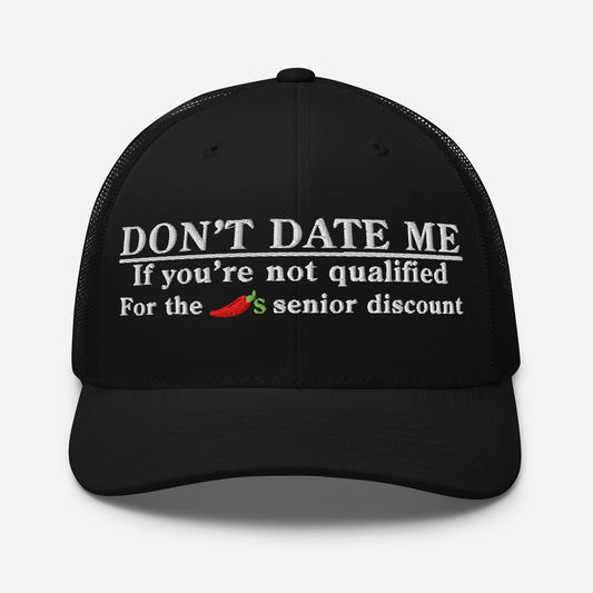 Don’t Date Me if You’re Not Qualified for the Senior Discount | Funny and Trendy Trucker Hat | Multiple Colors, Adjustable