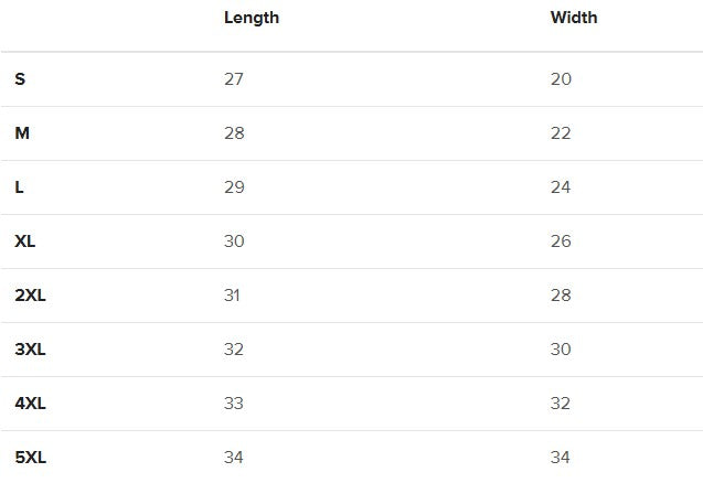 2XL | 31 | 28 |